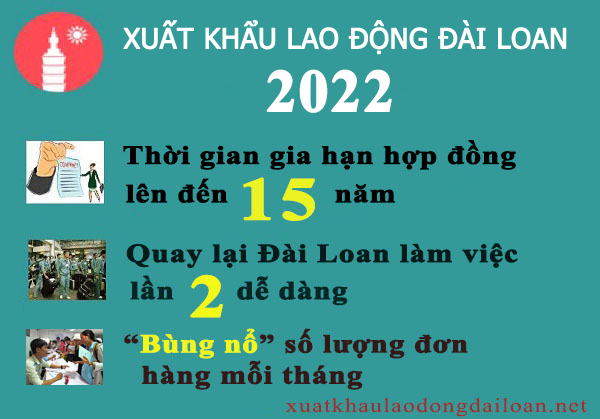 Theo nhận định từ các chuyên gia trong ngành thì năm 2022 sẽ là năm “bùng nổ” đơn hàng đi Đài Loan. Thực tế cho thấy, số lượng đơn hàng mà công ty chúng tôi tiếp nhận được từ nửa cuối năm 2022 đến đầu năm 2022 có dấu hiệu tăng vọt, trung bình trên 50 đơn hàng mỗi tháng với đa dạng ngành nghề, độ tuổi và lĩnh vực. Từ đó người lao động có thể dễ dàng hơn trong việc lựa chọn đơn hàng, ngành nghề phù hợp nhất với bản thân khi sang Đài Loan làm việc cũng như rút ngắn được thời gian xuất cảnh.